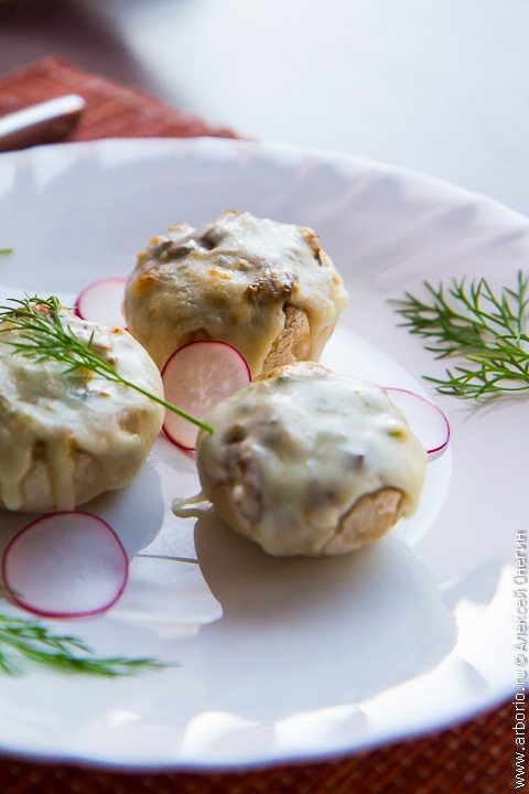 Фаршированные шампиньоны с сыром, запеченные до золотистой корочки в духовке, станут великолепной горячей закуской или легким обедом. Правильные ингредиенты и всего лишь 20 минут вашего времени — и ваше блюдо готово! Наслаждайтесь!