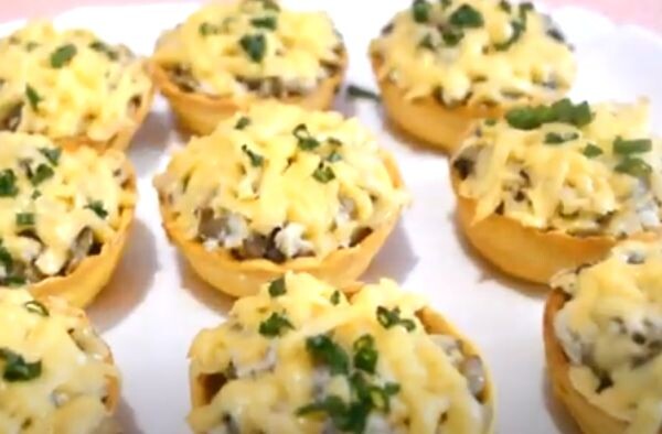 Идеальное сочетание куриного филе, грибов и сыра образует насыщенную и ароматную начинку, которая завораживает с первого укуса. Курица добавляет нежность, грибы придают землистый привкус, а сыр делает начинку кремовой и сытной. А в сочетании с хрустящими тарталетками каждое угощение превращается в настоящий кулинарный праздник.