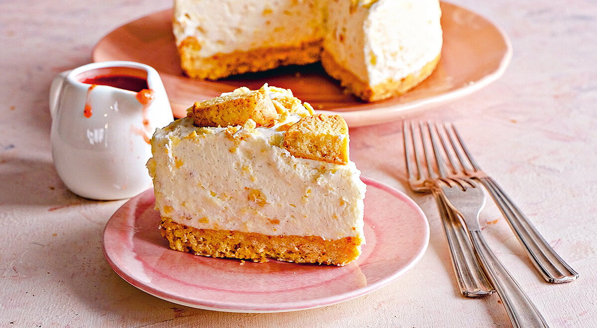 Шаг 6: Вылейте сливочную начинку в форму, выровняйте поверхность и украсьте оставшимися крошками печенья. Уберите в холодильник как минимум на 4 часа или на ночь.