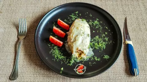 Запекание: Блюдо готовится в духовке, предварительно разогретой до 180°C, примерно 20-25 минут.