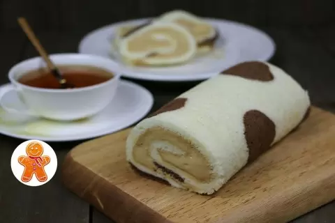 Когда бисквит остынет, его разворачивают, покрывают кремом и снова сворачивают. Конечный штрих — обернуть рулет в пленку и оставить в холодильнике на несколько часов для настаивания и стабилизации крема. Нежный, пористый рулет «Буренка» будет идеальным десертом, который украсит любое чаепитие.
