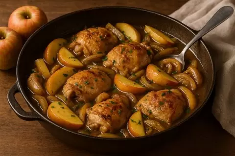 Многие могут скептически отнестись к приготовлению курицы с фруктами, но этот рецепт сравним по уюту с теплым осенним вечером, когда за окном падают листья. Курица с яблоками объединяет в себе как домашнюю простоту, так и нотки французского бистро. Идеально подходит для тех, кто хочет удивить близких чем-то необычным, но не желает проводить слишком много времени на кухне.