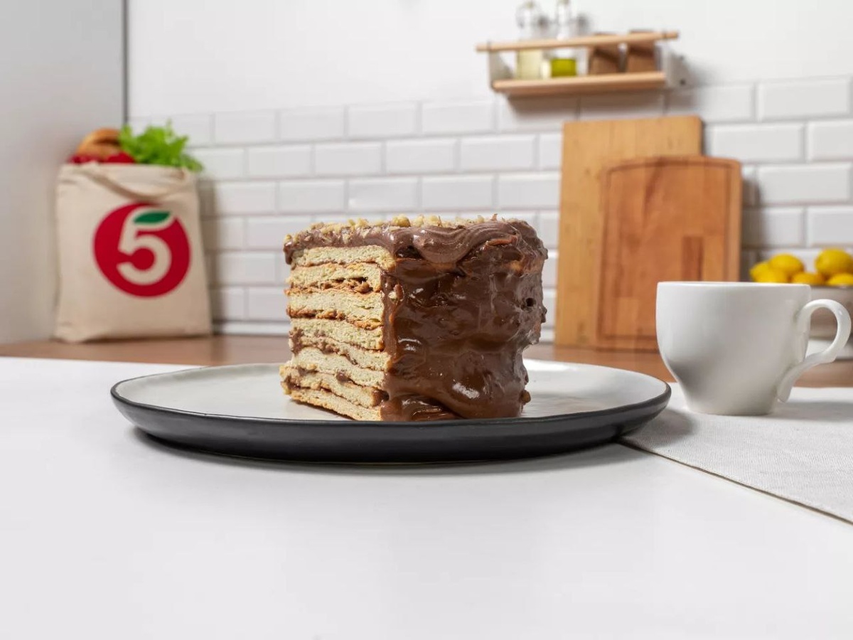 Готовые коржи смазываются горячим кремом и укладываются друг на друга. На следующий день торт, подавленный грузом, готов к подаче. Последним штрихом станет глазурь из сливок, какао и сахарной пудры, которая придаст изысканности и завершит создание этого сладкого шедевра.