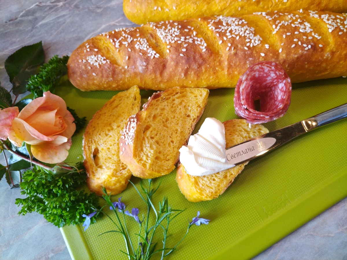 Для чудесных тыквенных багетов понадобятся:
