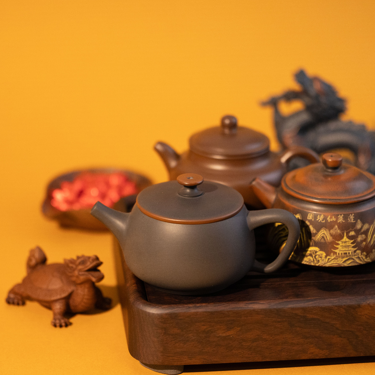 Исинские чайники изготавливаются из особой глины, богатой железом, что придает им характерный цвет. После обжига при температуре около 1150-1180°C формируется пористая структура, позволяющая чайнику впитывать и постепенно выделять ароматические масла. Эти чайники особенно хорошо работают с ферментированными и выдержанными чаями, такими как улуны и пуэры, смягчая жесткость и подчеркивая вкус напитка.