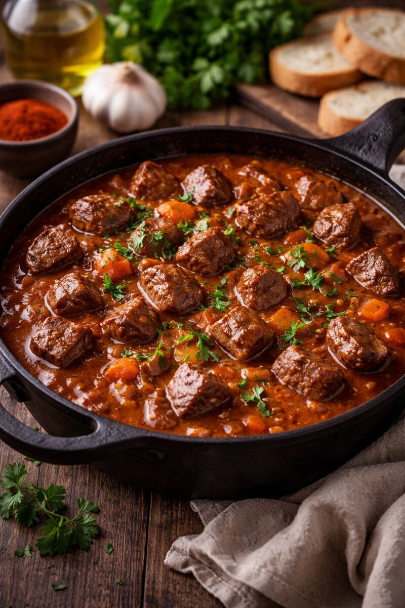 Гуляш – это не просто еда для эффектной подачи. Это блюдо, которое готовят, когда хочется тепла, домашнего уюта и уверенности в результате. Запах лука и мяса собирает всех на кухне, создавая атмосферу домашнего уюта и спокойствия.