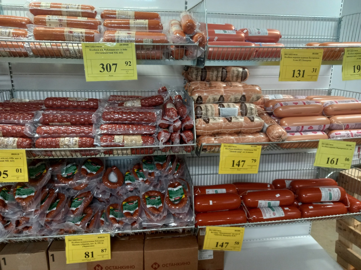 Ассортимент колбас в Светофоре нельзя назвать скромным. На выбор представлены как недорогие варианты, стоимость которых варьируется от 81 до 307 рублей за килограмм. Например, некоторые упаковки кратко призывают покупателей: "Возьми к столу, порадуй семью". Но стоит ли доверять таким обещаниям?