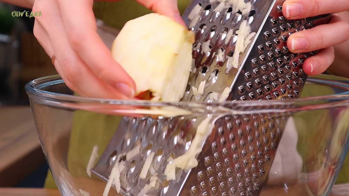 Начинается процесс с очищения яблок. Их нужно натереть на крупной терке, не выжимая сок – это придаст готовому блюду дополнительную влагу и вкус.
