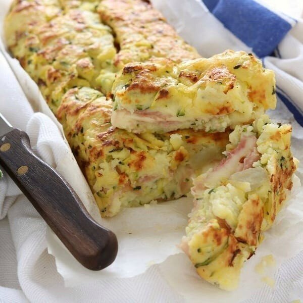 Восхитительный картофельно-кабачковый рулет с сыром и ветчиной