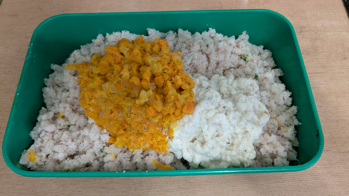 Далее мелко нарезаем лук и морковь, обжариваем их на сковороде до золотистого цвета. Все ингредиенты — фарш, замоченный батон, обжаренные лук и морковь — прокручиваем через мясорубку дважды для достижения однородной массы.