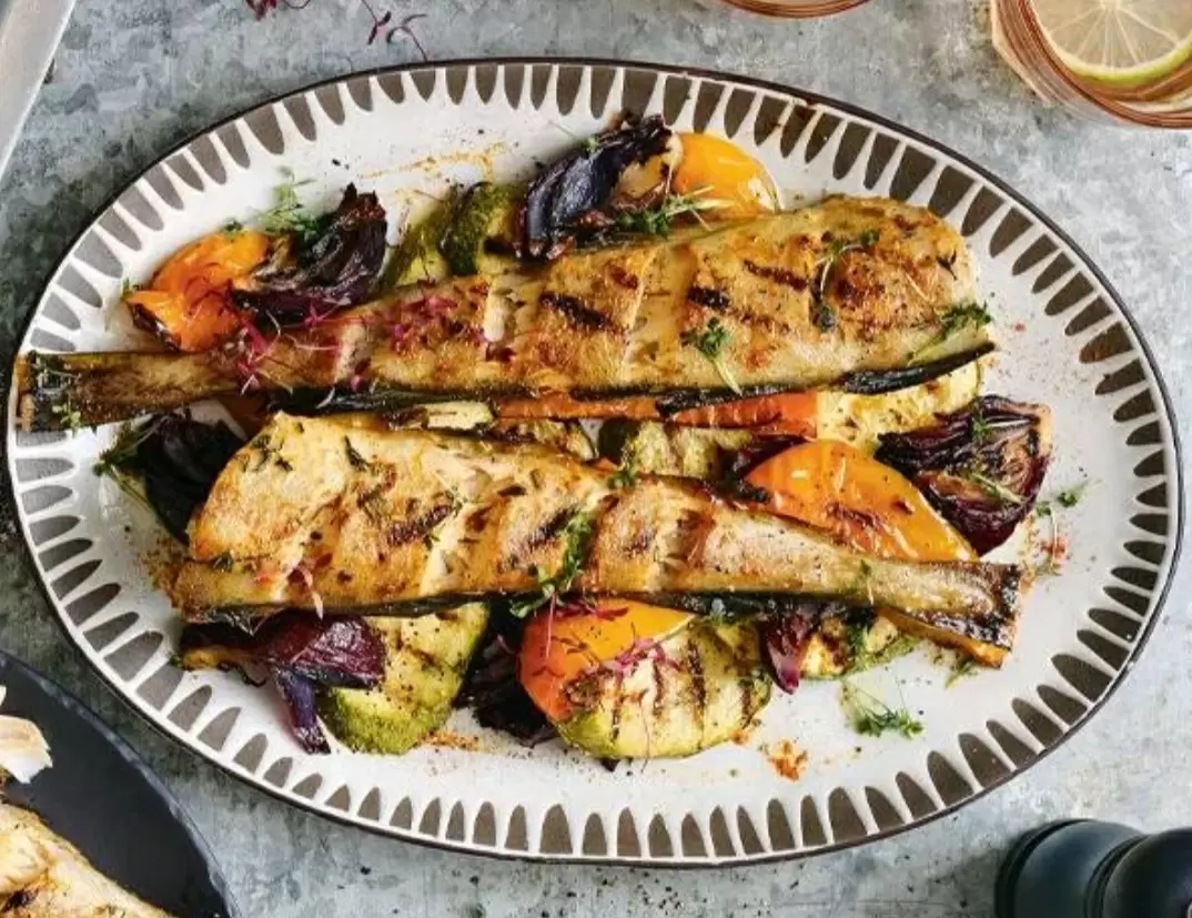 Для гармоничного сочетания с рыбой подойдут любые овощи на гриле, такие как: