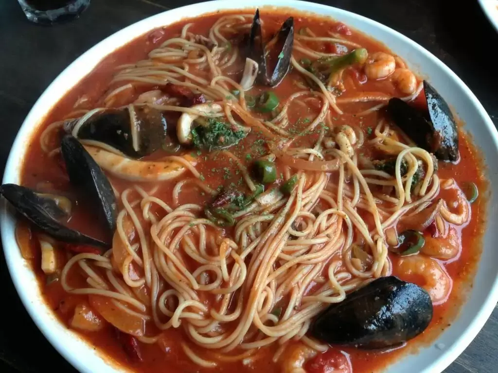 На раскаленной сковороде, смазанной тонким слоем масла, начинают обжаривать мелко нарезанный чили и раздавленный чеснок, что наполняет кухню восхитительными ароматами. Затем в эту смесь добавляют морепродукты и продолжают готовить, позволяя им принять золотистую корочку. На этом этапе можно нарезать очищенные от кожицы помидоры кружочками и подготовить спагетти, которые заранее отвариваются до готовности.