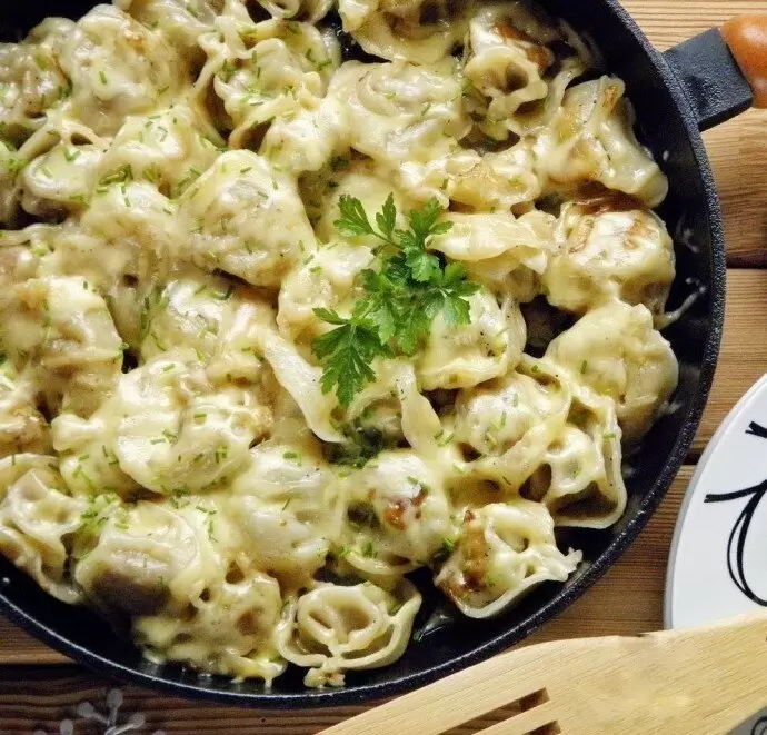 Это блюдо прекрасно подойдет как для семейного ужина, так и для встречи с друзьями. Пельмени с расплавленным сыром обеспечат вам множество комплиментов и накормят всех до сыta!