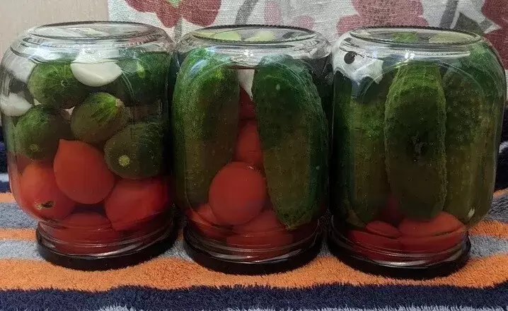 После этого закрутите крышки, переверните банки и укутайте их для лучшей консервации. Через некоторое время можно будет наслаждаться овощным ассорти, которое напомнит о вкусах детства.