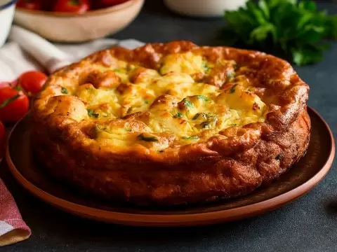 После завершения выпекания достаньте пирог из духовки и дайте ему немного остыть. Рекомендуется подавать горячим в сопровождении свежего огуречного салата.