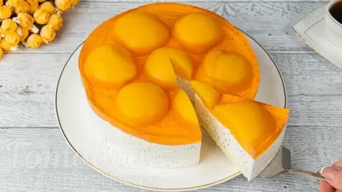 Этот торт с персиками станет настоящей изюминкой вашего праздника. Гармония сливочного мусса и персиков в сочетании с нежным бисквитом создает удивительный кулинарный шедевр, которому трудно сопротивляться.